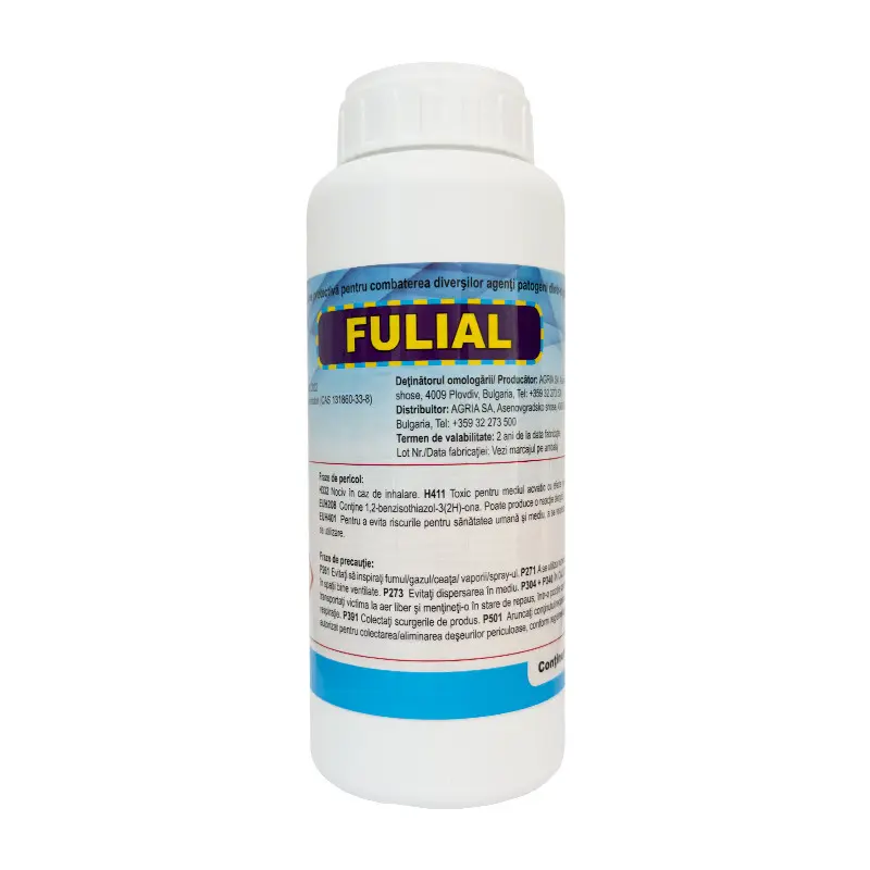 Aceasta are acţiune sistemică şi translaminară în plantă şi inhibă transportul de electroni în respiraţia mitocondrială a fungilor, inhibă germinarea sporilor, creşterea miceliului. FULIAL contribuie la o bună siguranţă a culturilor, la menţinerea culturii verde, având astfel un bun randament.